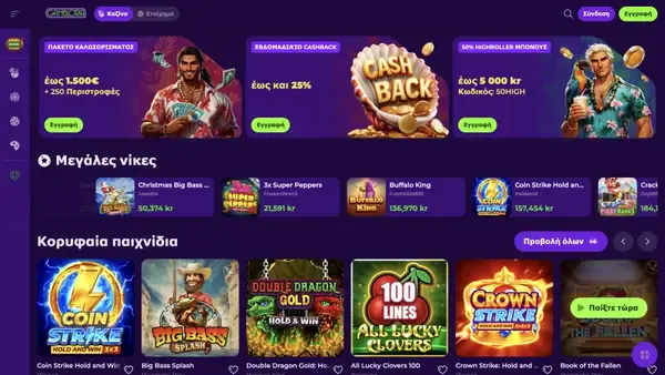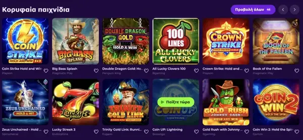 | Άμεσες Νίκες | Crash games, scratch cards, τίτλοι τύπου bingo | Πολλαπλά studios σε όλο τον κατάλογό μας |